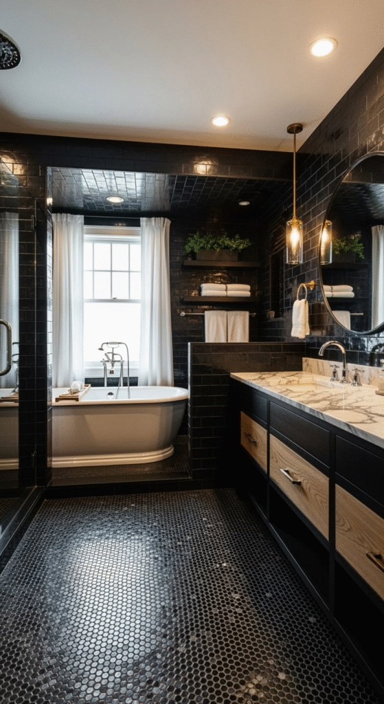 👉 Follow our Pinterest board, “Dark & Dramatic Bathrooms,” for daily inspiration that proves bold is beautiful.