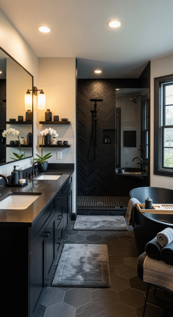 This is black bathroom design at its most refined and serene.