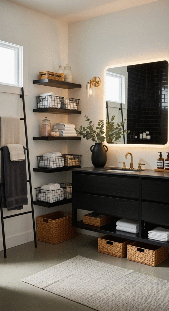 15. Black Bathroom Storage Solutions: Stylish Concealment