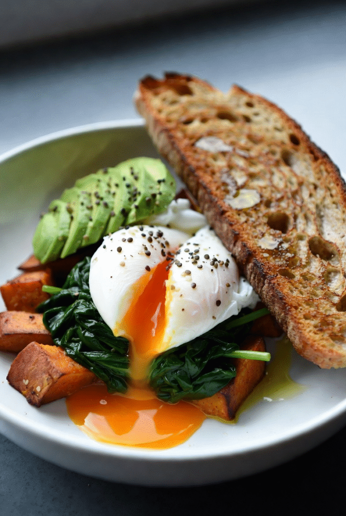 🍳 Pro-Tip & Customize It: Meal-prep the roasted sweet potato and sautéed spinach in batches. For a next-level touch, use an [AFFILIATE LINK: “high-quality avocado oil spray”] for roasting – it has a higher smoke point than olive oil. Crumble some feta for extra calcium or add a pinch of chilli flakes to boost metabolism.