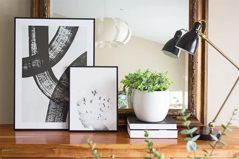 DIY tip: Spray-paint old frames with metallic gold paint for a custom look.