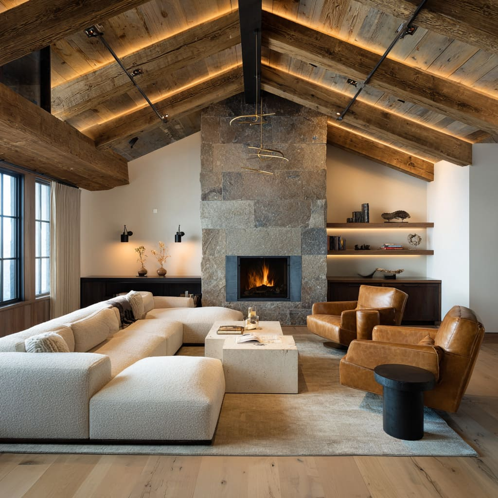 The modern chalet living room design is a masterclass in balance. It lives in the resonant tension between weight and hush, solidity and softness, mountain legacy and contemporary clarity. It translates the alpine spirit into a universal language of refuge, proving that true comfort lies in thoughtful composition.